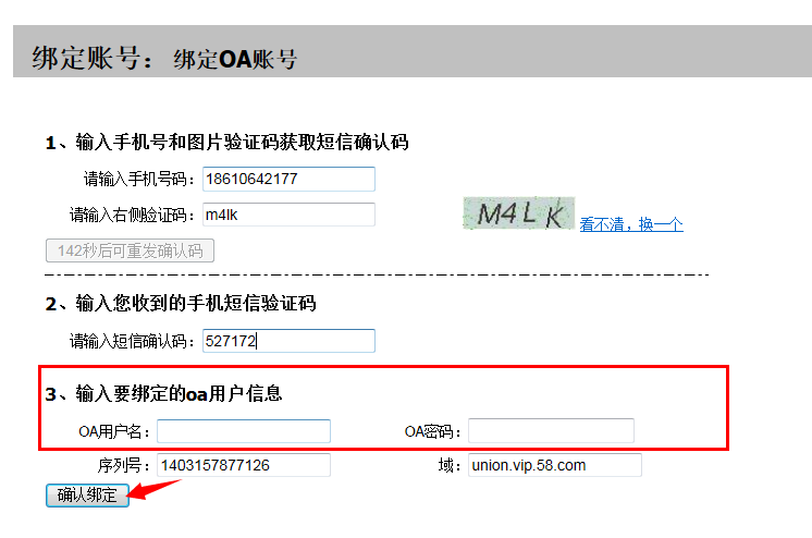5、輸入OA用戶名密碼,點(diǎn)擊確認(rèn)綁定