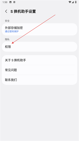2、選擇設(shè)置選項,進(jìn)入S換機(jī)助手設(shè)置頁面。