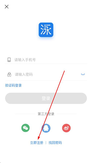 3、在登錄頁面,點擊立即注冊選項,進(jìn)入注冊頁面。