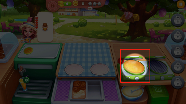 3、餅皮制作好之后,玩家需要快速的點(diǎn)擊餅皮,以避免餅皮出現(xiàn)糊鍋的情況;