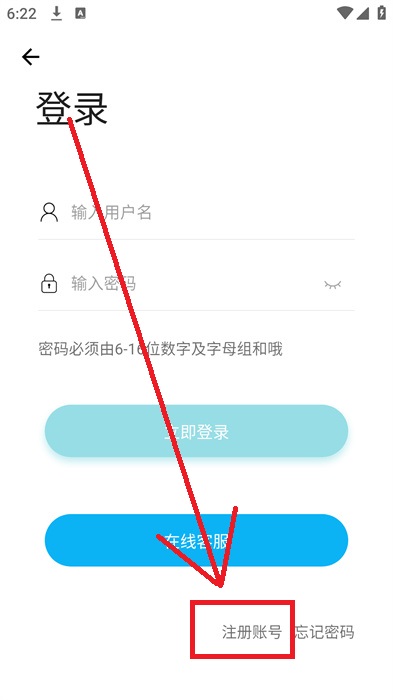 3、點擊之后就會到登錄界面,在登錄界面中點擊右下角的【注冊賬號】去進行注冊;