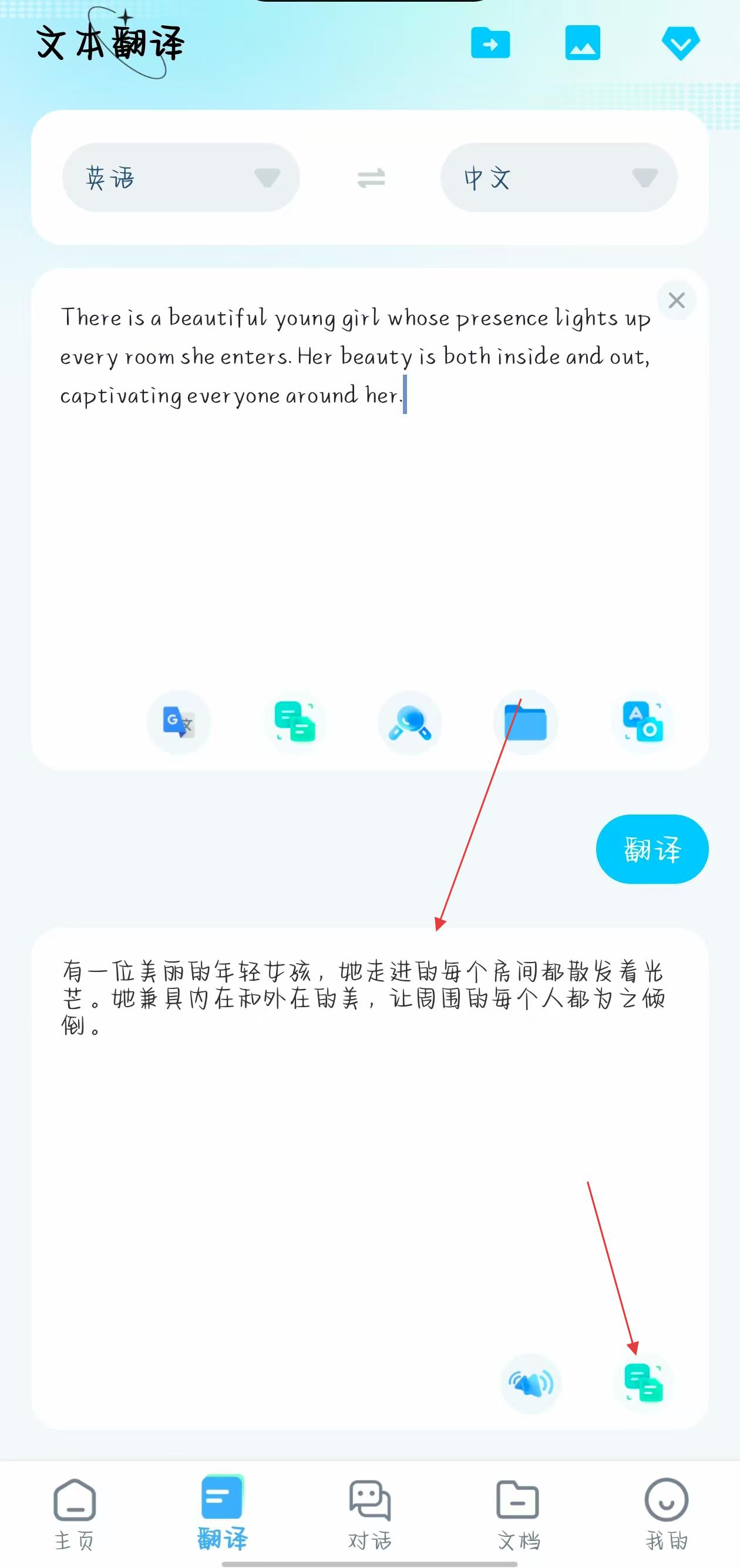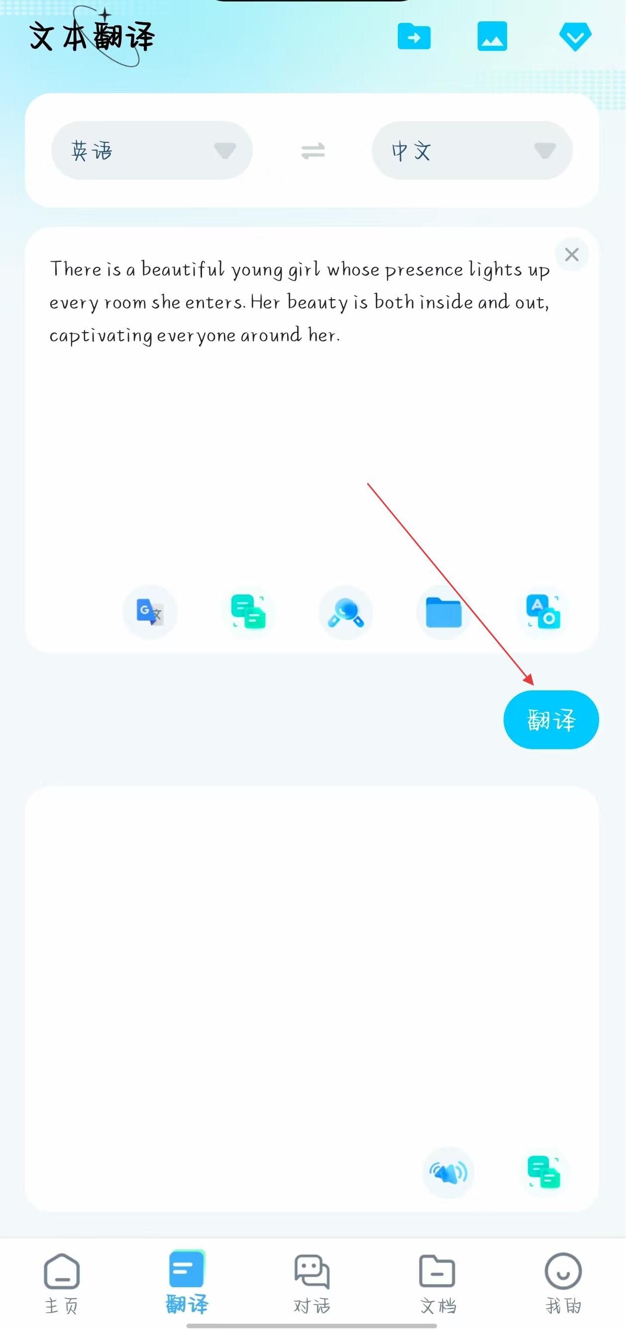 3、輸入完成后,點擊輸入框下方的翻譯按鈕,等待應(yīng)用生成翻譯結(jié)果。