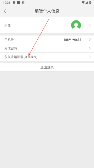 3、在編輯個人信息頁面,點(diǎn)擊永久注銷賬號選項(xiàng),進(jìn)入注銷當(dāng)前賬號頁面。