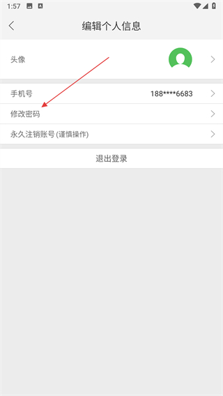 2、在編輯個人信息頁面,點(diǎn)擊修改密碼選項(xiàng)。