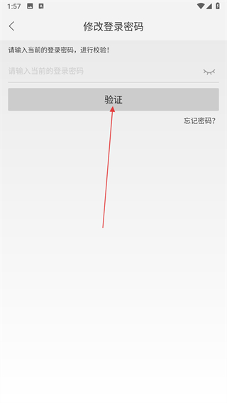3、輸入當(dāng)前的登錄密碼,點(diǎn)擊驗(yàn)證按鈕。