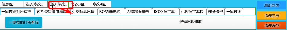 [添加]一鍵技能打所有怪、藥劑恢復(fù)滿血滿魔、價格超高出售、BOSS暴擊秒人、人物超強暴擊、BOSS掉寶率提高、小怪掉寶率提高、部分卡怪、一鍵過圖