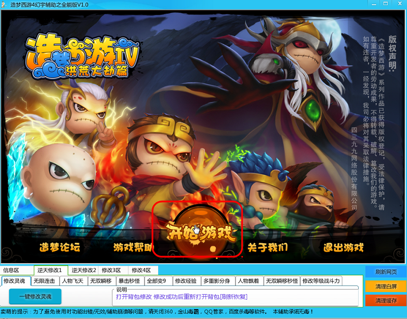 造夢西游4幻宇輔助針對造夢西游4頁游進行修改制作,可以方便玩家快速完成各種任務(wù)或者修改各種技能參數(shù),具有無限血魔、等級、戰(zhàn)斗力、屬性爆表,秒滿級,一鍵過圖、部分卡怪、價格超高出售等功能,有玩造夢西游4的玩家不要錯過。