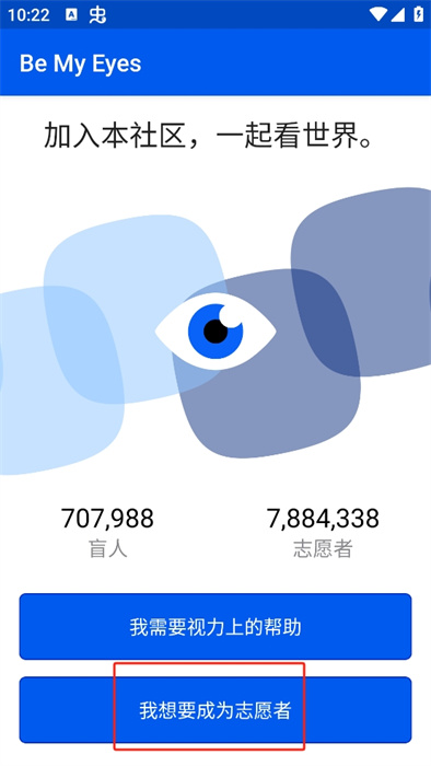 1、下載安裝了軟件之后,在界面中我們需要點擊【我想要成為志愿者】;