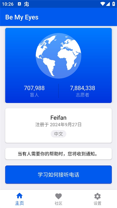 7、最后我們就可以成為志愿者,只要有盲人需要幫助,電話有可能就會打到你的手機上。