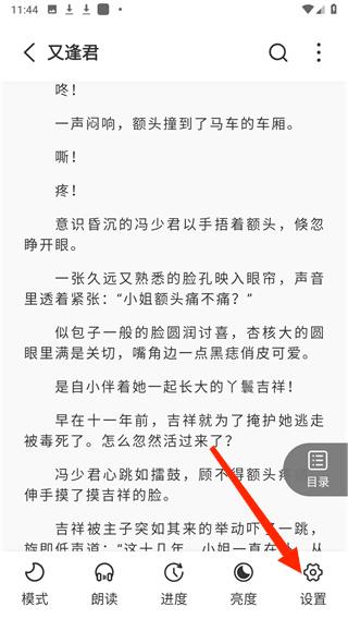 3、在閱讀詳情頁(yè)點(diǎn)擊右下角的設(shè)置;
