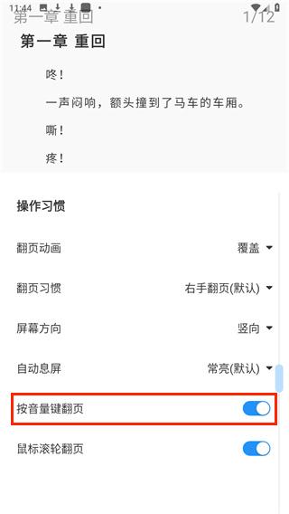4、下劃找到”操作習(xí)慣“設(shè)置,勾選按音量鍵進(jìn)行翻頁(yè),另外還可以設(shè)置翻頁(yè)動(dòng)畫、翻頁(yè)習(xí)慣、屏幕方向、自動(dòng)息屏、鼠標(biāo)論滾翻頁(yè)等。