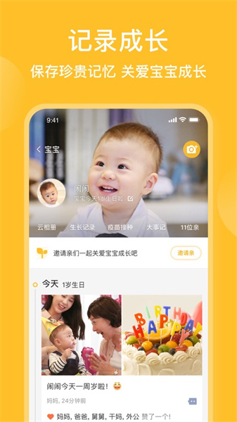 一款家人親友一起記錄、分享、關愛寶寶成長的手機APP。