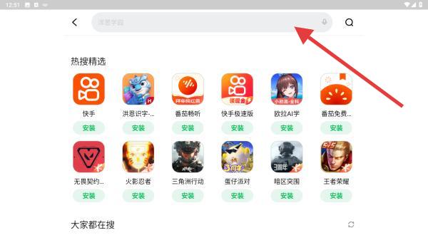 2、支持參考熱搜推薦搜索頁會展示熱門應(yīng)用,可直接點擊快速進入,完成輸入后觸發(fā)搜索。