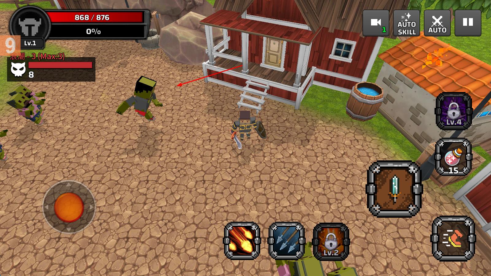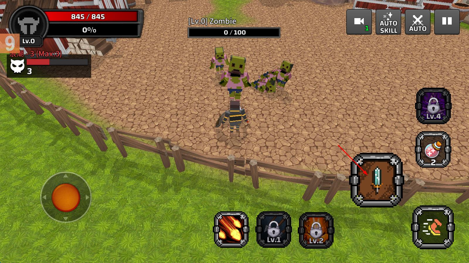 2、進入戰(zhàn)斗場景后,點擊右側(cè)武器圖標,角色將切換對應(yīng)武器,利用虛擬搖桿控制移動,靠近敵人并自動攻擊,合理釋放技能應(yīng)對僵尸 。