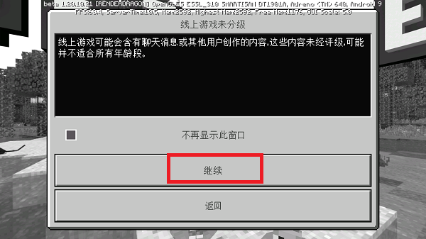 7、最后在進(jìn)入到游戲世界之前,會(huì)有一個(gè)提示,我們直接點(diǎn)擊【繼續(xù)】就可以進(jìn)入到這個(gè)沙盒世界中進(jìn)行創(chuàng)造或者是生存。