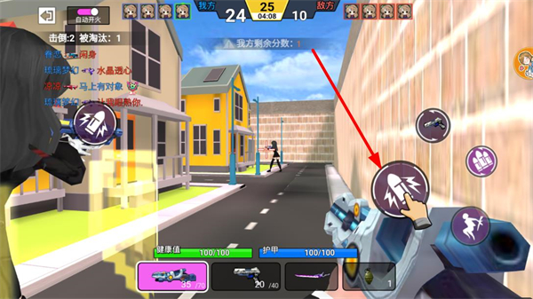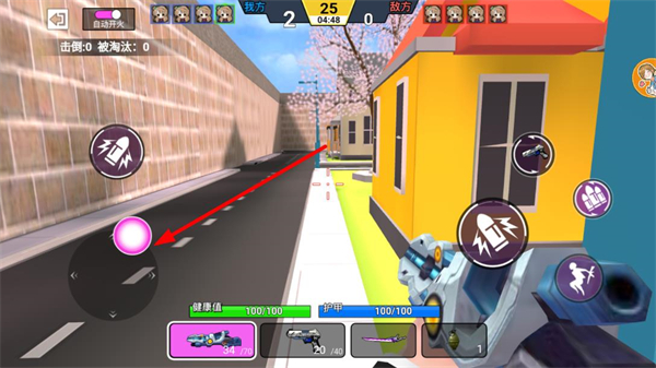 1、通過左側(cè)搖桿操控角色移動,在戰(zhàn)場中靈活走位,躲避敵人攻擊或接近目標(biāo)敵人。
