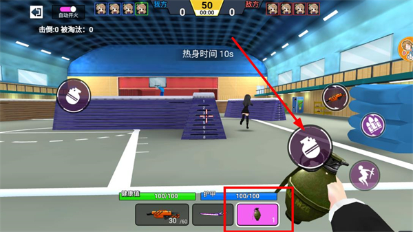 3、使用手雷等道具,對敵人造成范圍傷害,在敵人聚集時使用道具可有效提升消滅敵人的效率。