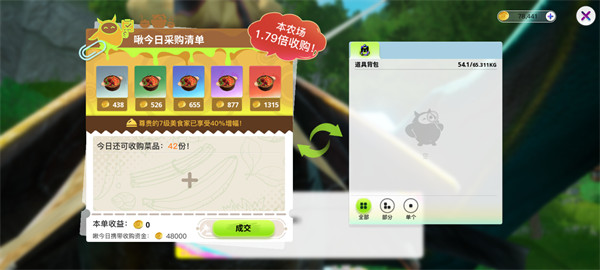 在大地圖上我們可以看到各種農(nóng)場,根據(jù)采購清單來制作烹飪進行售賣,相比直接賣材料可以獲得更多的金幣,但是也需要付出一定的勞動;