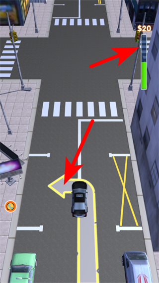1、進(jìn)入極速賽車前進(jìn)游戲,操控車輛沿箭頭方向行駛,完成停車等操作以獲取獎金。