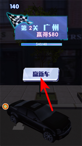 3、在關(guān)卡結(jié)算界面,點擊贏新車按鈕,可獲得新車獎勵,繼續(xù)游戲。