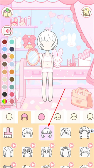 4、選擇另一款短發(fā)發(fā)型,同時(shí)可從左側(cè)調(diào)色板中選擇顏色,完成發(fā)型設(shè)計(jì)。