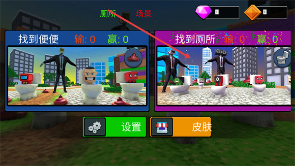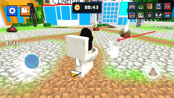 1、進入游戲后,選擇找到廁所或找到便便模式,操控角色在場景中移動。
