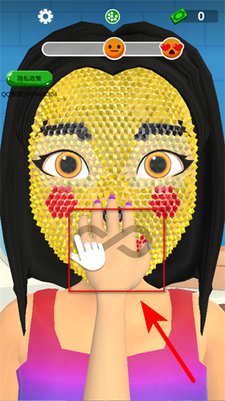 2、在游戲頁(yè)面,按照提示用手操作去除臉部的裝飾,逐步完成臉部整理。