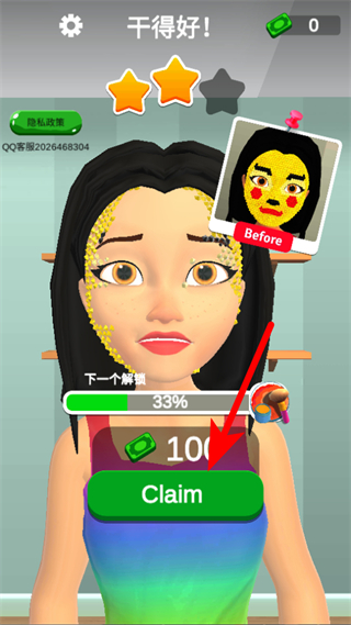 4、完成關(guān)卡后,點(diǎn)擊Claim按鈕,領(lǐng)取獎(jiǎng)勵(lì)并進(jìn)入下一個(gè)關(guān)卡。