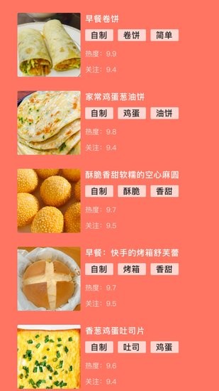 樓里的早餐店食譜為用戶帶來(lái)更多的早餐食譜分享,海量的早餐做法在軟件之中都可以隨時(shí)進(jìn)行性學(xué)習(xí),為用戶帶來(lái)更加豐富的早餐種類可以進(jìn)行選擇,讓用戶可以學(xué)會(huì)更多的豐盛早餐。