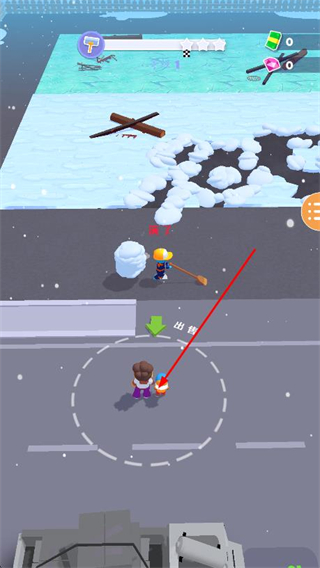2、操控角色,用工具清理場景內(nèi)的積雪。