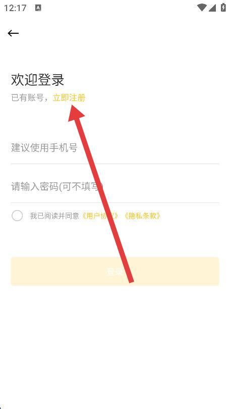 3、點擊登錄頁面中立即注冊選項,進入注冊頁面。