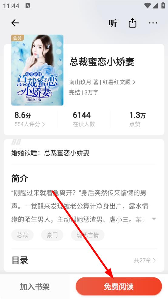 因?yàn)檫@部小說是收費(fèi)小說,所以我們先點(diǎn)擊【免費(fèi)試讀】看一下相關(guān)段落是否感興趣再?zèng)Q定是否用閱讀餅去購買整篇文章。