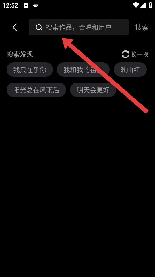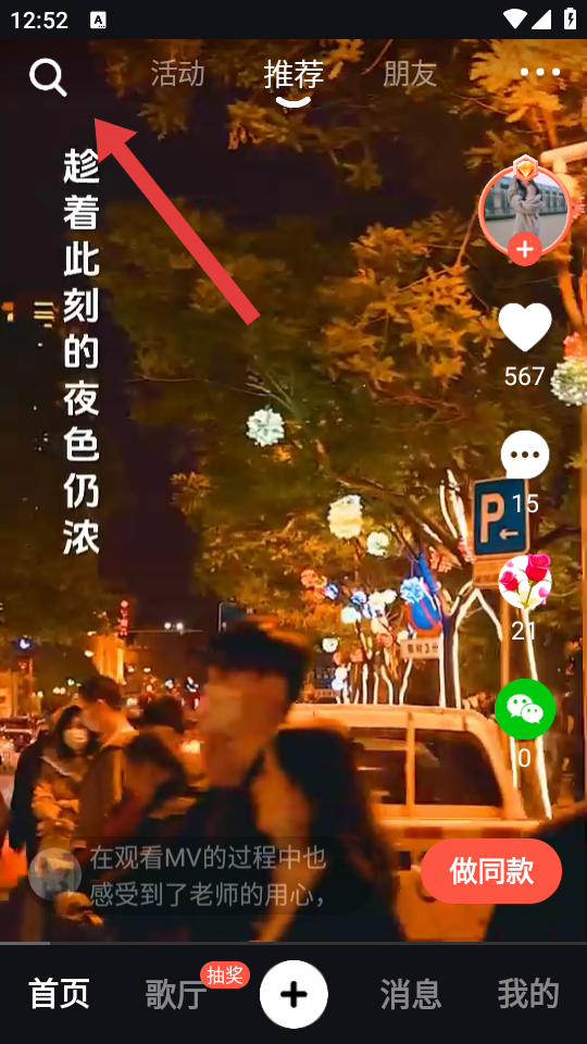 1、在音畫主界面,點(diǎn)擊左上角放大鏡形狀的搜索圖標(biāo),進(jìn)入搜索頁面。