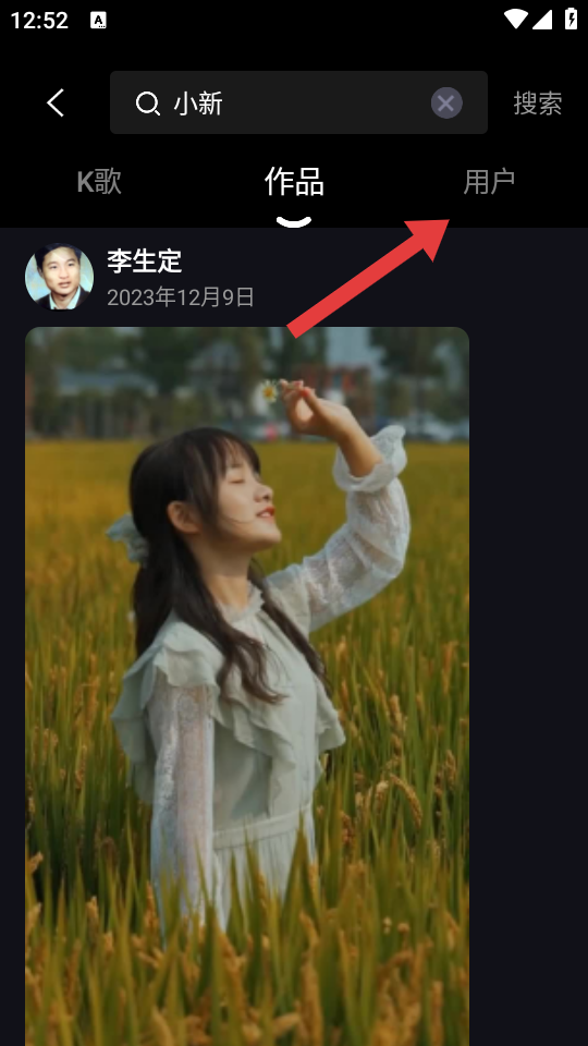 3、搜索結(jié)果加載后,點(diǎn)擊頂部的用戶標(biāo)簽,切換到用戶搜索結(jié)果列表。