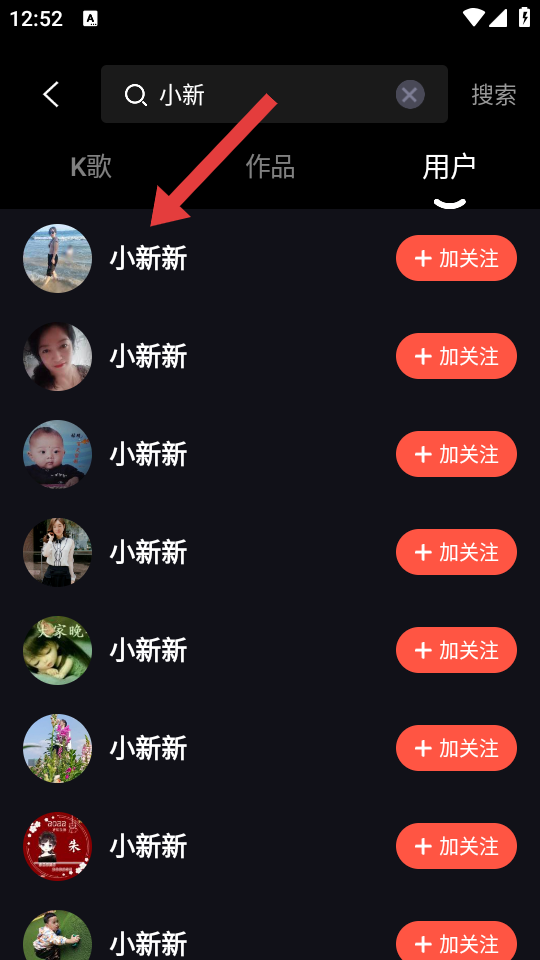4、在用戶列表中,找到目標(biāo)用戶,即可進(jìn)行后續(xù)互動操作如關(guān)注等。