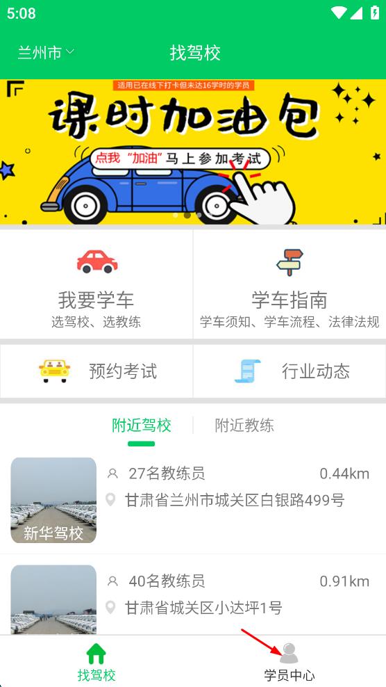2、進入應(yīng)用主界面后,在界面底部找到“學(xué)員中心”選項,點擊“學(xué)員中心”選項,進入登錄頁面。