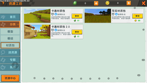 7、進(jìn)入到資源工坊之后,我們只需要去點(diǎn)擊【解鎖】就可以解鎖材質(zhì)包然后使用。