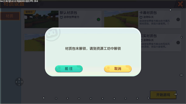 6、然后我們可以看到材質(zhì)包沒(méi)有解鎖,需要前去解鎖,那么就要點(diǎn)擊【前往】;