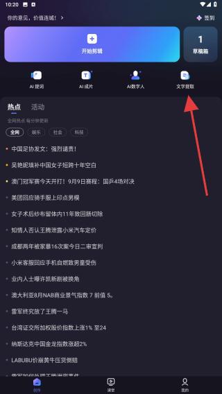 1、打開度加剪輯,進(jìn)入到首頁(yè)內(nèi),點(diǎn)擊文字提取的按鈕。
