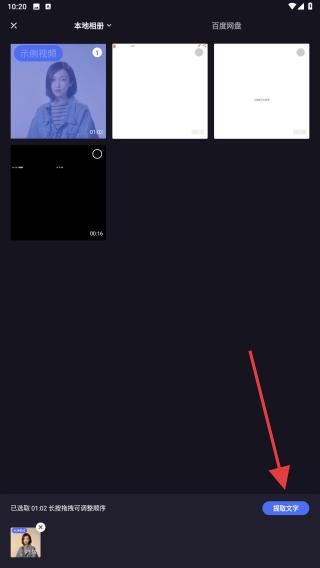 3、在此頁(yè)面內(nèi),選擇需要提取的視頻,再點(diǎn)擊提取文字即可跳轉(zhuǎn)至該頁(yè)面。