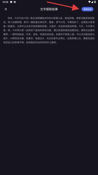 4、點(diǎn)擊后,會(huì)顯示提取的結(jié)果,復(fù)制全部即可。