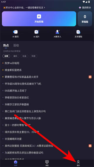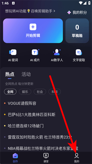 1、打開度加剪輯APP,點(diǎn)擊右下角我的,進(jìn)入個(gè)人頁(yè)面。
