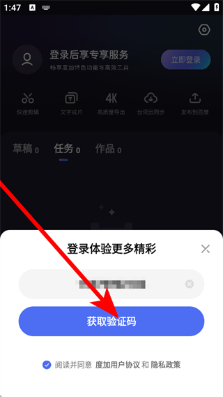 3.在登錄彈窗中,輸入手機(jī)號(hào)后,點(diǎn)擊獲取驗(yàn)證碼按鈕。