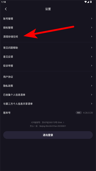 3、在設(shè)置頁(yè)面中點(diǎn)擊清理存儲(chǔ)空間,進(jìn)入清理存儲(chǔ)空間頁(yè)面。