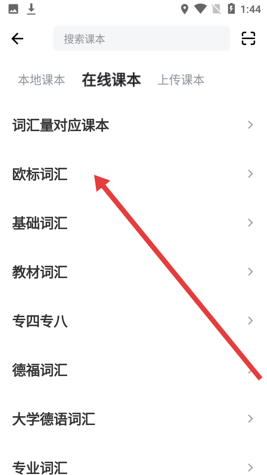 2、在課本選擇頁面,點擊在線課本,找到并點擊歐標詞匯等分類。
