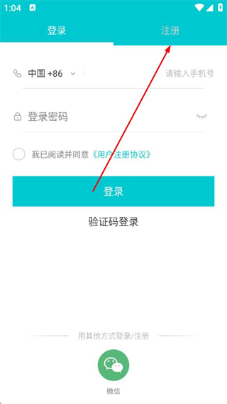 3、在登錄/注冊頁面點擊注冊,進入注冊頁面。