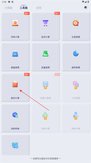 2、在工具箱的頁面內(nèi),點擊復(fù)利計算的功能按鈕。