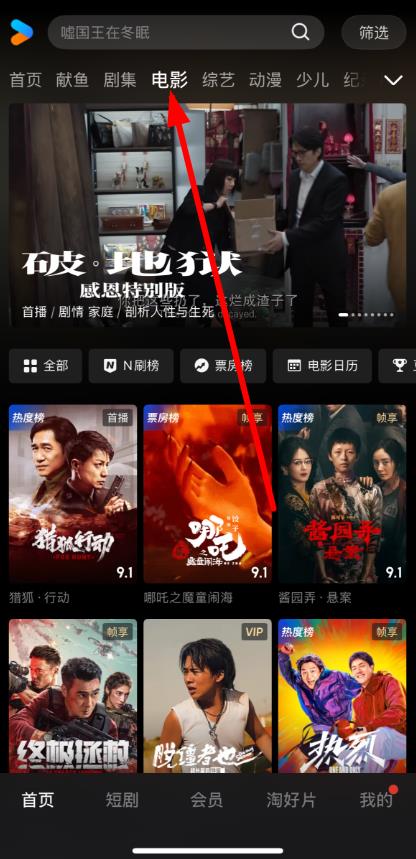 2、在首頁上方分類欄中點擊電影,進入電影頁面瀏覽并選擇想要下載的電影。