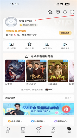 2、進入到個人主頁內,用戶需點擊登錄/注冊的功能按鈕。
