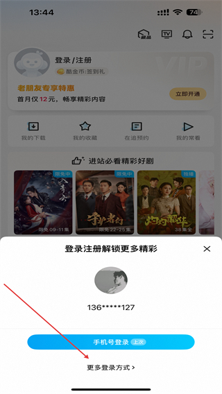 3、在下方彈出的登錄頁面內,點擊更多登錄方式的按鈕。